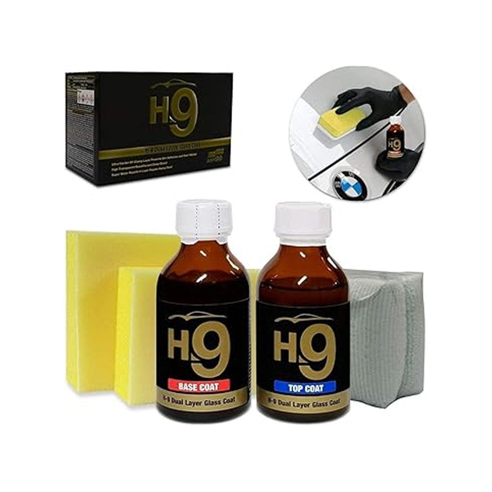 H9 Dual Layer Glass Coating creates a harden coated layer on your vehicles surface similar to glass. The material does not soften when expose to high heat on a hot summer day which prevents dirt from penetrating into the surface. The coating doesn't damage the paint surface and adds a coated protection layer. Allowing ease of maintenance while giving your vehicle a deeper level of gloss and anti-fouling effect for a longer period of time.