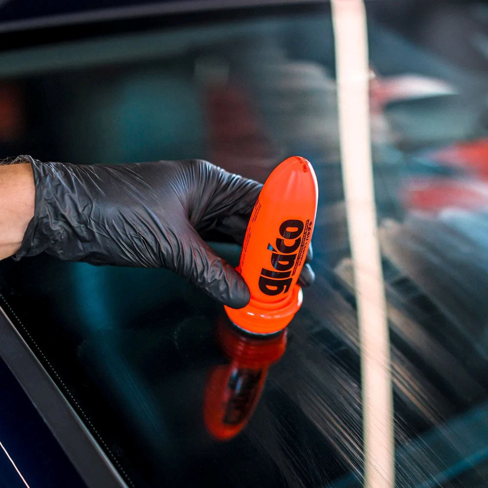 2. Use the felt applicator to rub the liquid firmly into the glass. Be sure to get complete coverage.