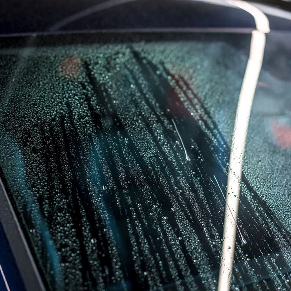 Apply this, and rain will bead up and roll down the glass, cleanly taking with it any other water along the way. Just by driving at 45 km/h or more, all the water will fly off the glass! Significantly reduces the stress and danger of driving in the rain, especially at night. Treating your glass is made easy with the built-in felt applicator.