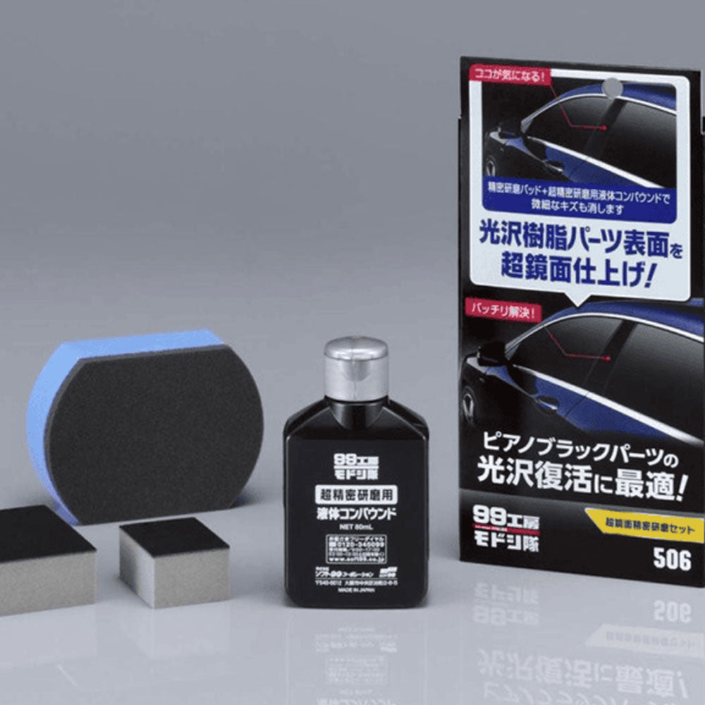 The high-gloss black plastic known as piano black shows scratches very easily, and can show age much more quickly than paint or other areas of the vehicle. This kit makes it easy to restore painted and unpainted piano black and other high-gloss plastics by hand, refining them to a near new condition.