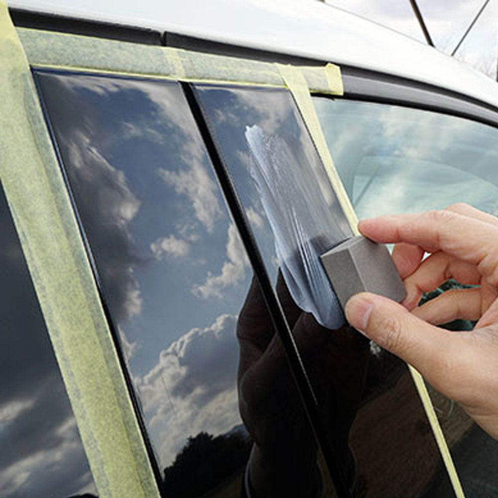 Note: Be sure to thoroughly clean and thoroughly dry the area to be treated, and mask off neighbouring areas. Use a scratch removal compound (sold separately) with the compound sponge to remove any deep scratches beforehand.